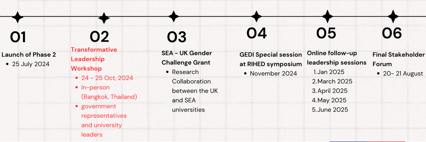 - SEA-UK Gender Challenge Grant which encourages GEDI related research collaboration between universities from Southeast Asia and the UK.