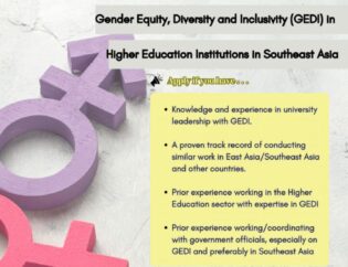 We are excited to announce the launch of the SEA-UK Gender Equity, Diversity, and Inclusivity (GEDI) Challenge Grant, an initiative to tackle GEDI related issues in HEIs in Southeast Asia, leading to evidence-based decision making for the sustainable future of higher education and to establish a cross-cultural GEDI network between the UK and Southeast Asian higher education institutions. This initiative is part of the broader project on Strengthening Leadership with Gender Equity, Diversity, and Inclusivity (GEDI) in Higher Education Institutions in Southeast Asia.